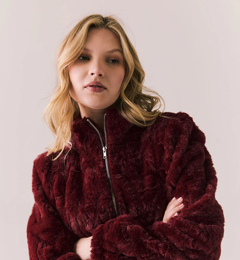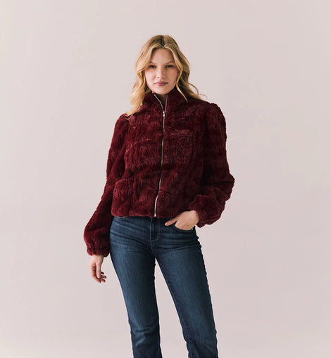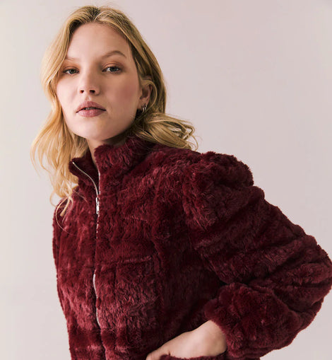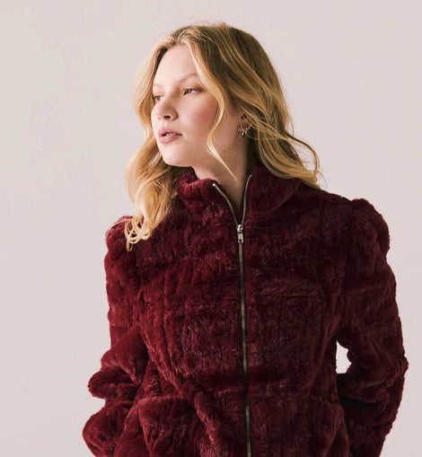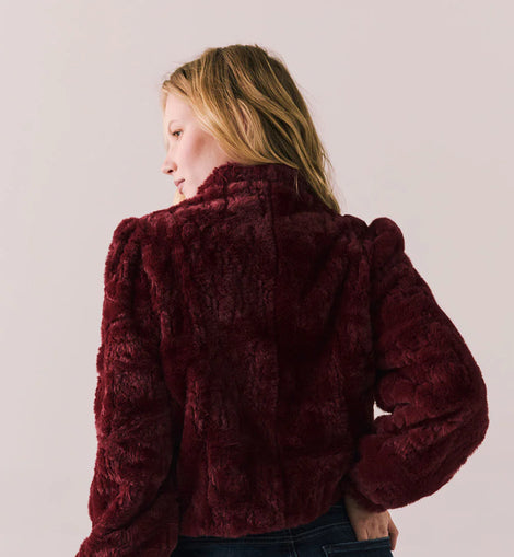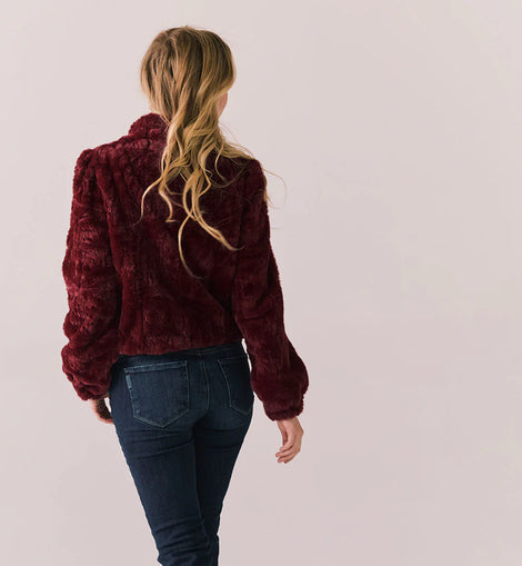 "Make a Statement in Burgandy Faux Fur Jacket"